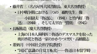 未分類 シンポジウム主題講演者及び題目 魯迅仙台留学120周年紀念国際学術シンポジウムの主題講演者及び題目が確定しましたので、お知らせいたします。あわせてシンポジウムのタイムテーブルの概要、会場についてもお知らせします。PDFもございますので、ぜひお誘い合わせの上、ご参加ください... 2024.08.05 未分類